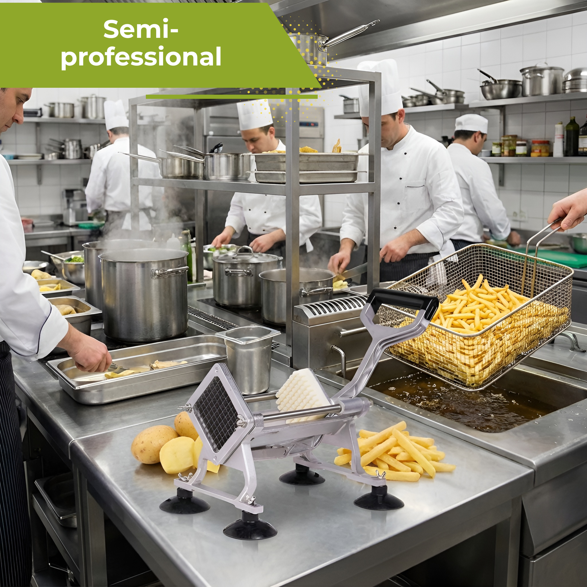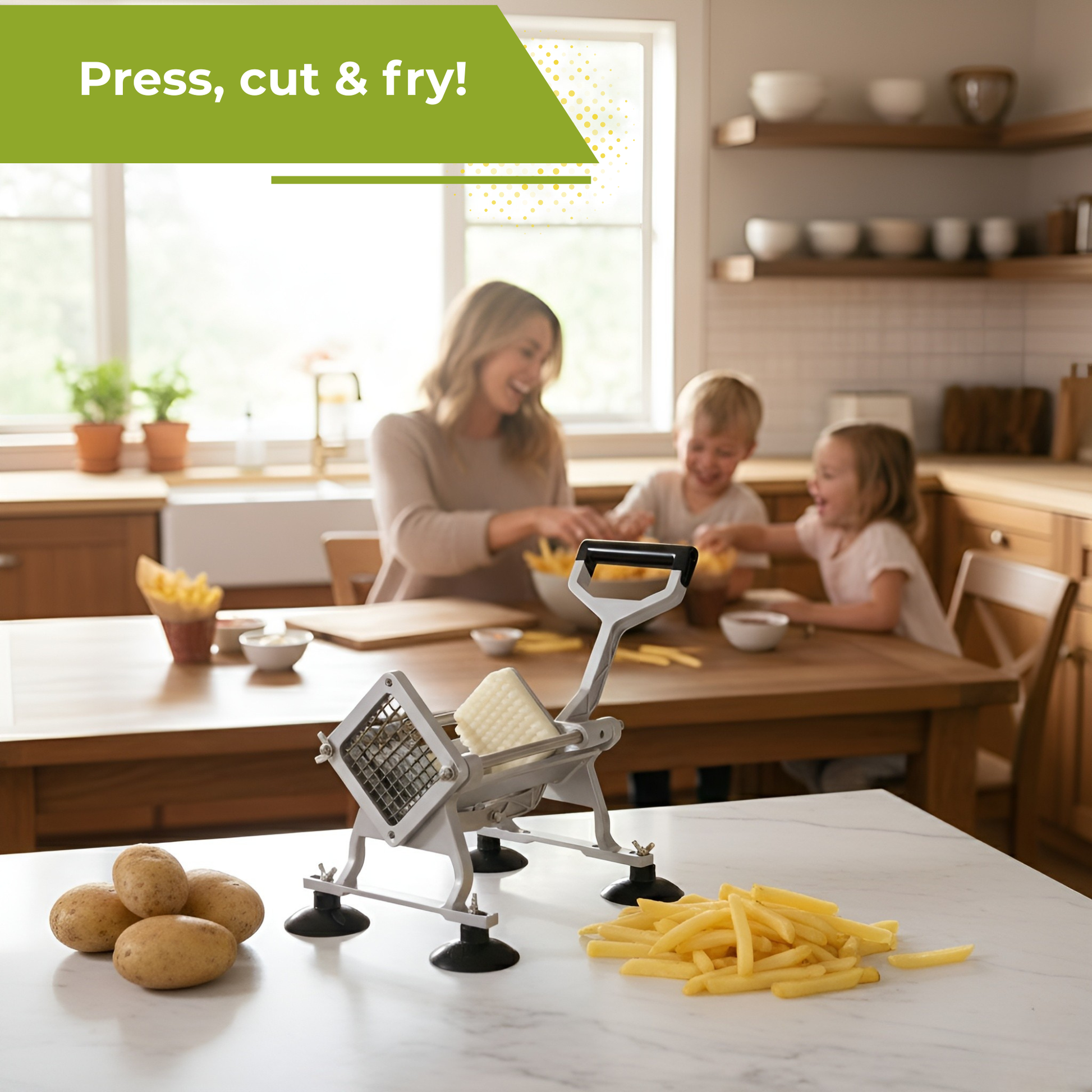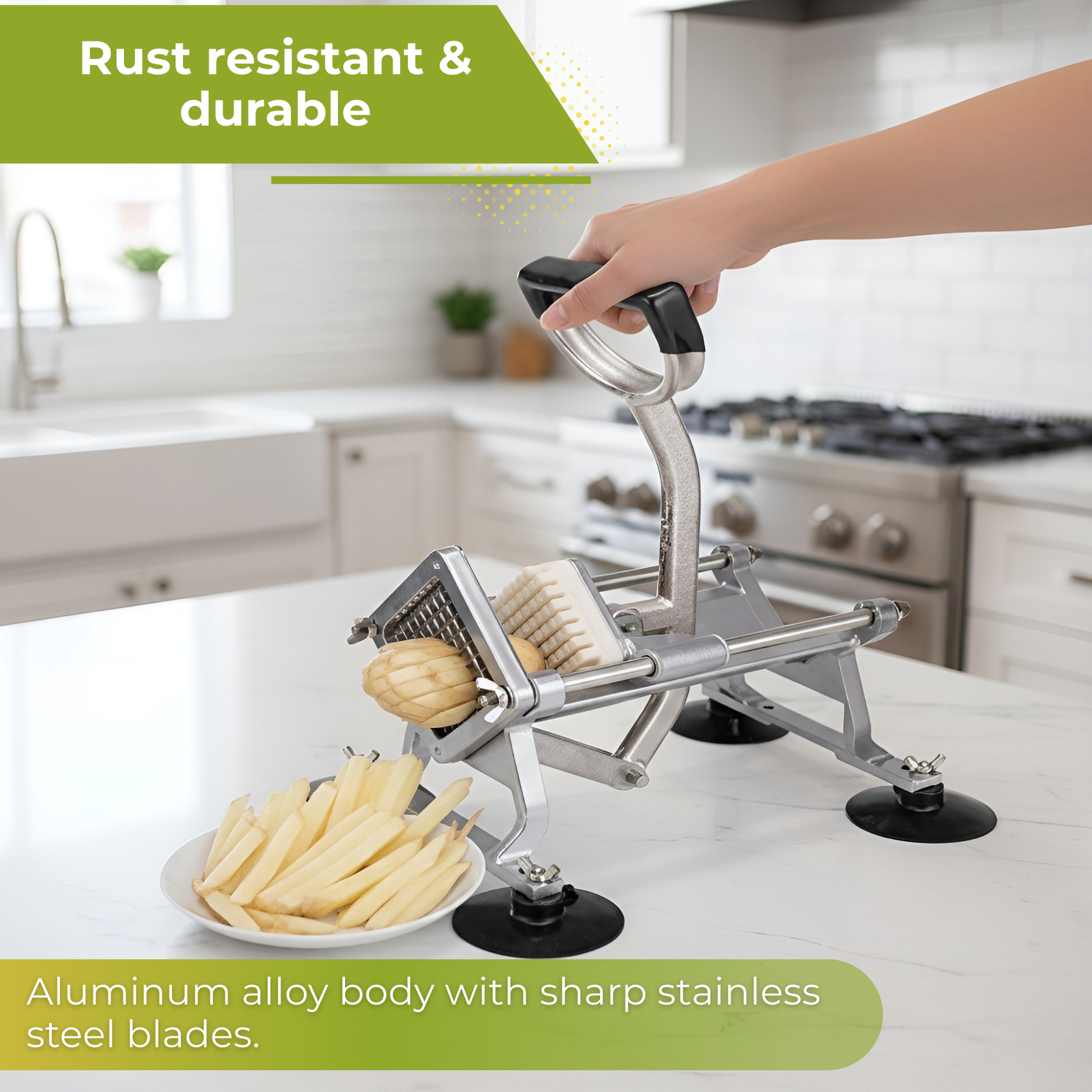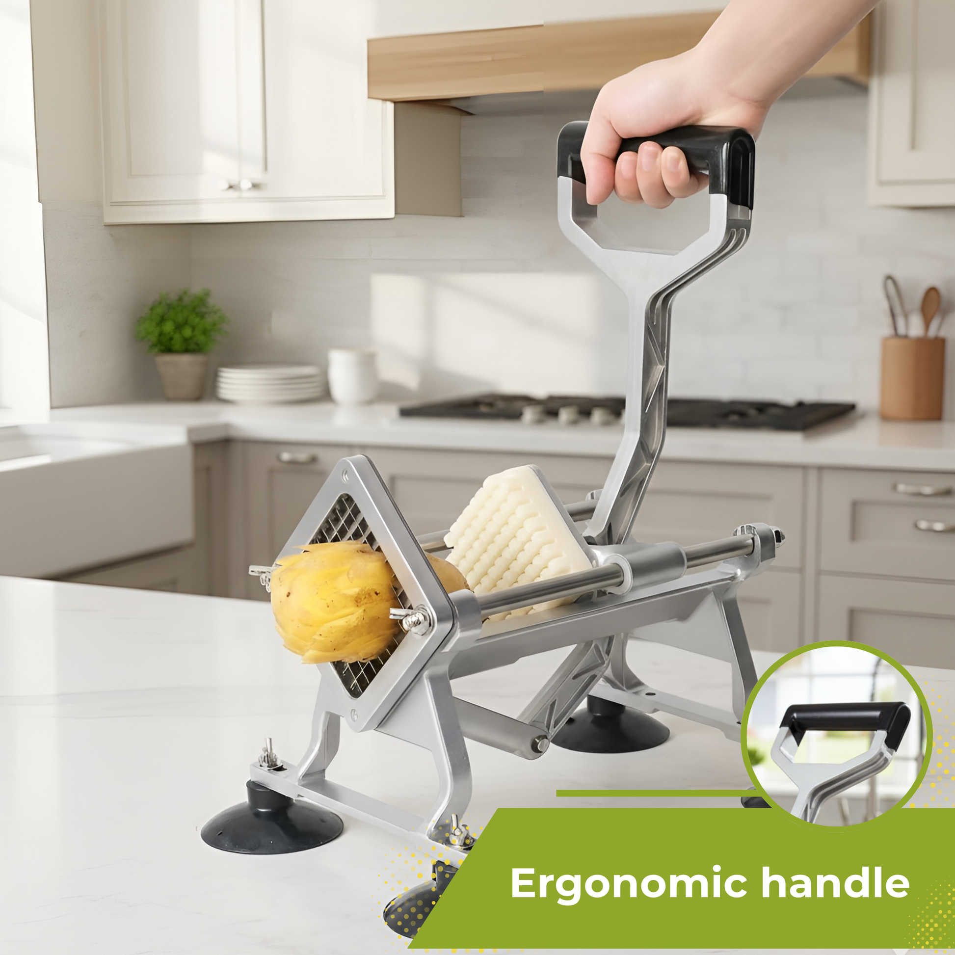 Maak in een handomdraai perfecte frietjes en gelijkmatige groentesticks met deze professionele French Fry Cutter van HI NATURE™. Dankzij de stevige constructie, verwisselbare messen en krachtige hefboom is dit dé keukenhulp voor iedereen die houdt van snelheid én precisie. Ideaal voor aardappelen, wortels, komkommers, uien en nog veel meer — geschikt voor zowel thuis als in de horeca.