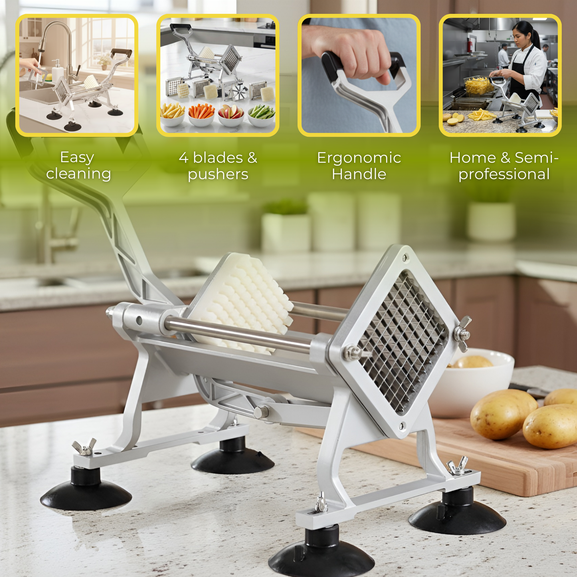 Frietsnijders - Patatsnijder - inclusief 4 roestvrijstalen messen